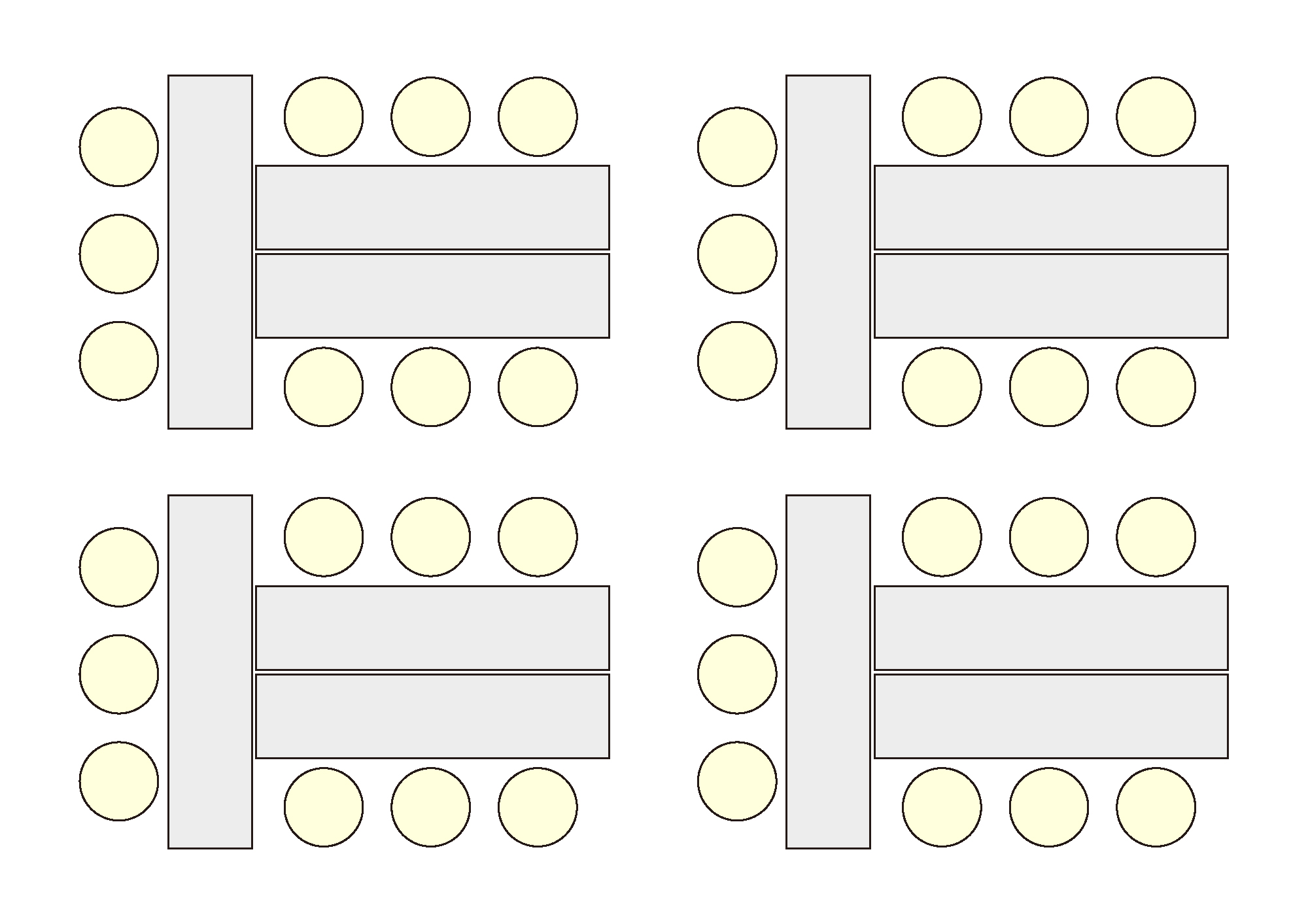 以下に、おもなテーブルと椅子の配置図をいくつか紹介していきます。